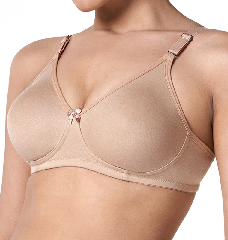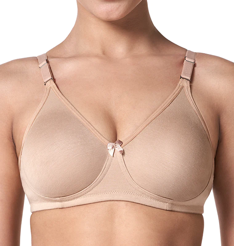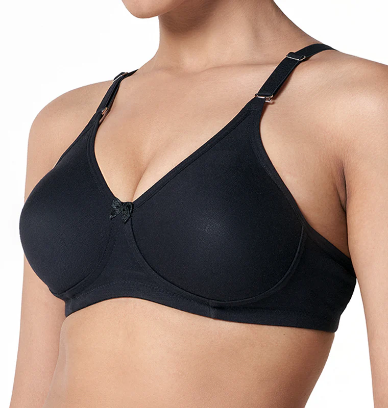 The T-Shirt Bra is contemporary, stylish and ideal for great support under T-shirts. Seamless under T-Shirts and perfect for daily wear, It comes with seamless moulded cups as well as detachable straps. This non-wired.